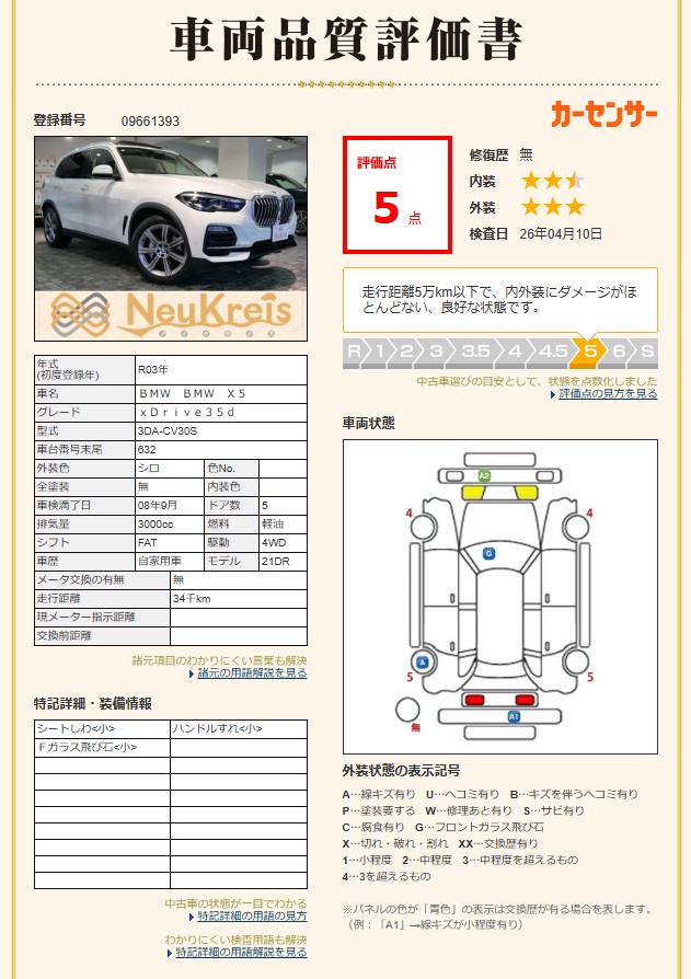 上記の骨格部位に損傷があるもの又は修復されているものは修復歴となります。