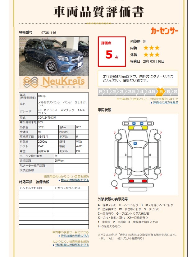C…腐食有り G…フロントガラス飛び石 X…切れ・破れ XX…交換歴在り